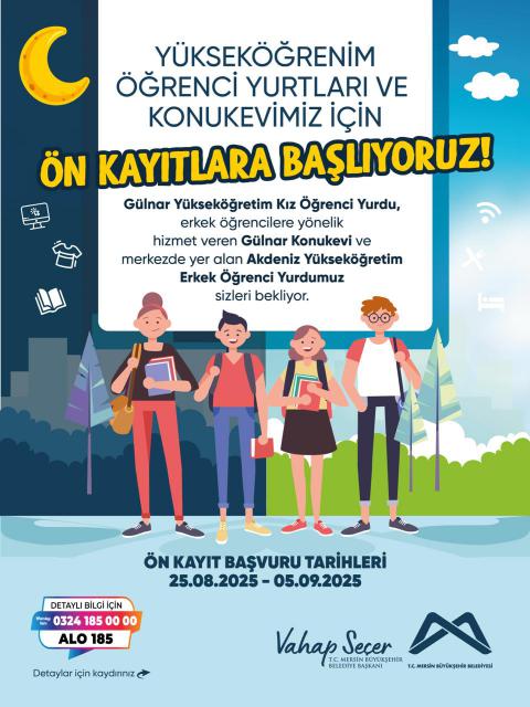 Ağustos 25, 2025Yükseköğrenim öğrenci yurtları ve konukevimiz için ön kayıtlara başlıyoruz!