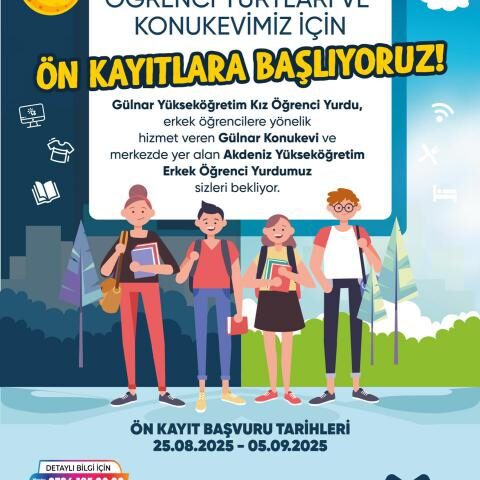 Ağustos 25, 2025Yükseköğrenim öğrenci yurtları ve konukevimiz için ön kayıtlara başlıyoruz!